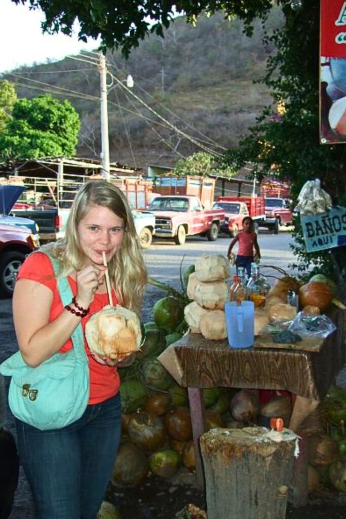 Hydrating with a coconut during a road trip from Mexico City to Oaxaca