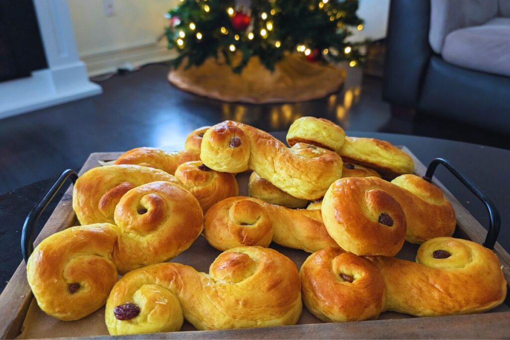 - lucikatter – S-shaped buns made with saffron, and raisins